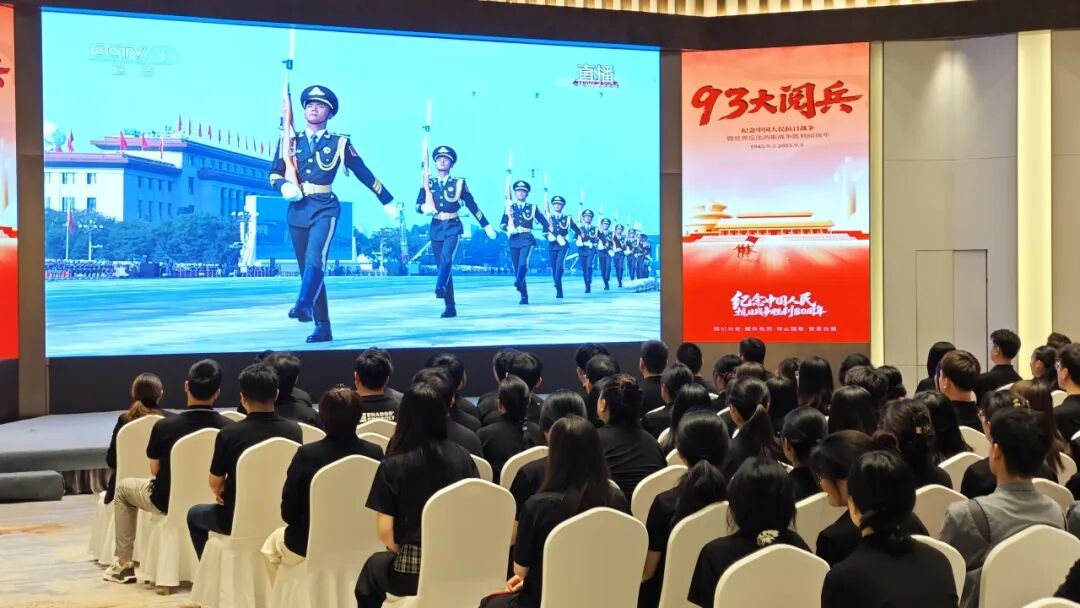 2025年9月3日,在纪念中国人民抗日战争暨世界反法西斯战争胜利80周年的庄严时刻,仟那酒店集团办公室全体员工,齐聚仟那元熙酒店三层元熙厅,集体观看气势磅礴的九三阅兵。